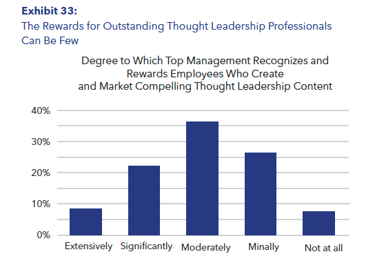 The most talented thought leadership group can’t get much traction if others in the firm ignore its invitations to collaborate. And without strong involvement and sincere encouragement, thought leadership is not likely to have much, if any, revenue impact if its activities and their outputs are dismissed internally.