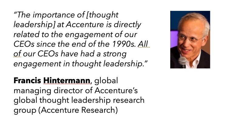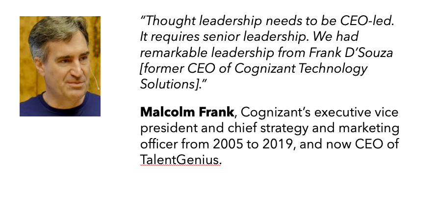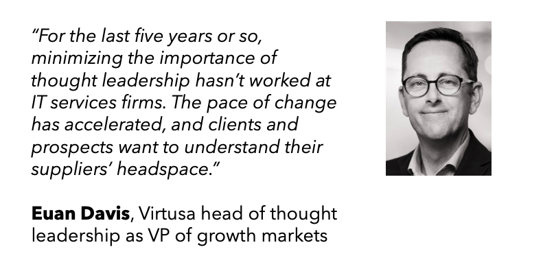 Clients of IT services firms have a burgeoning number of choices today that they didn’t five or 10 years ago. Thought leadership is a differentiator in those choices.